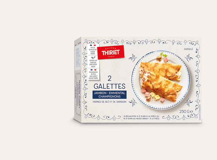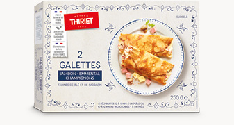 Dénomination de vente : Produit surgelé. 2 galettes jambon, emmental, champignons.