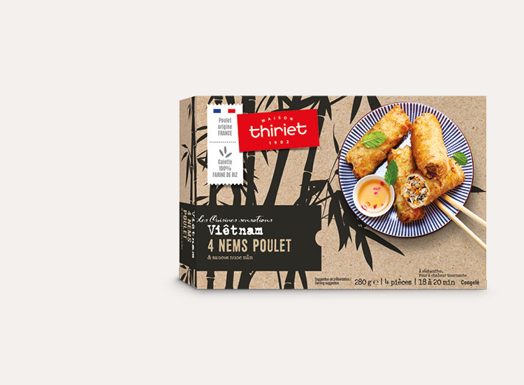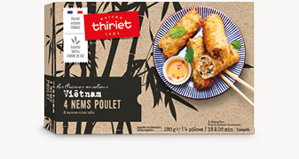 Quand vous plongerez votre nem poulet dans la sauce nuoc mâm, fermez les yeux et laissez-vous transporter en Orient : une farce à base de poulet origine France, vermicelles de pois, carottes, châtaignes d’eau et champignons noirs … et voguent les saveurs !