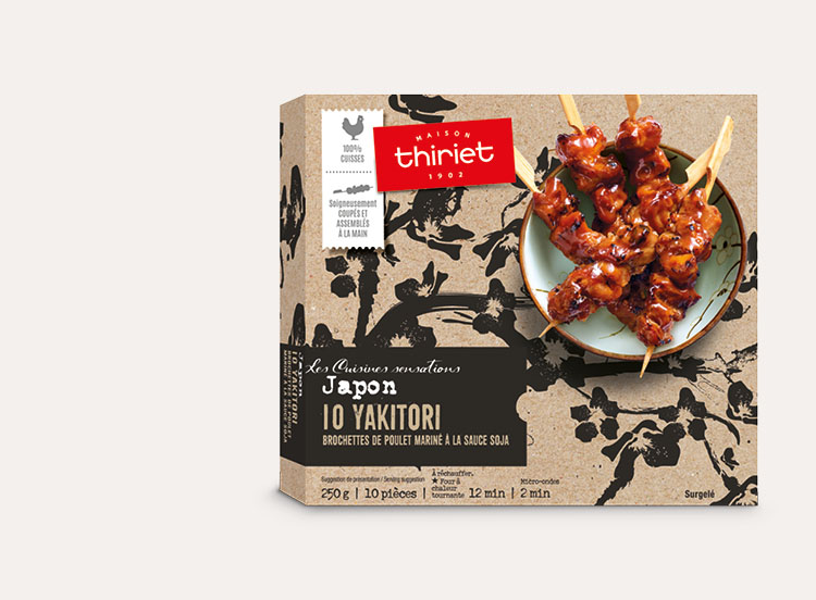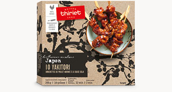 Déposez les yakitori encore surgelées sur une plaque recouverte d’un papier cuisson ou dans un plat allant au four. Enfournez à mi-hauteur et laissez réchauffer 12 minutes à 180°C (Th 6) (14 minutes dans un four traditionnel).