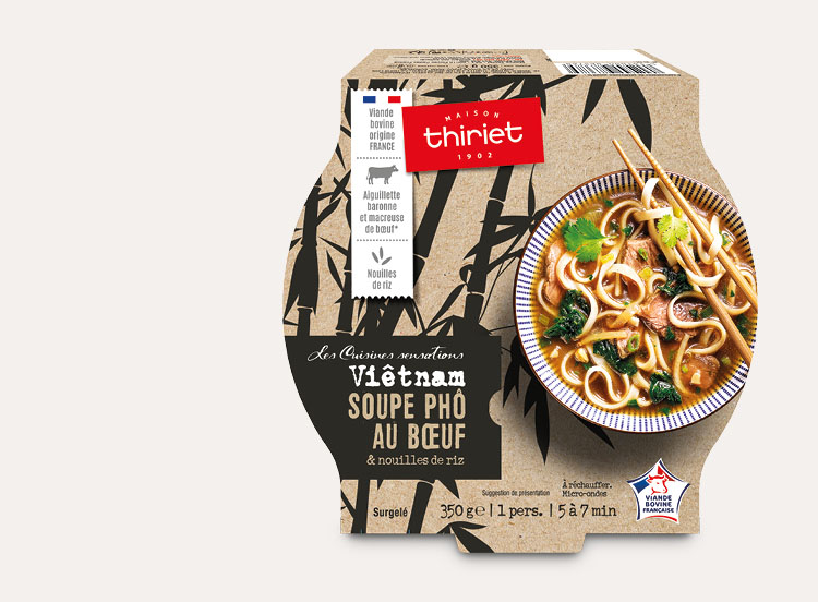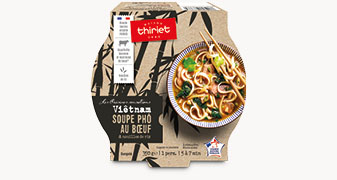 Sortez le bol de Phô de son étui, retirez l'opercule. Faites réchauffer le produit encore surgelé au micro-ondes à 750W pendant 6 à 7 minutes.