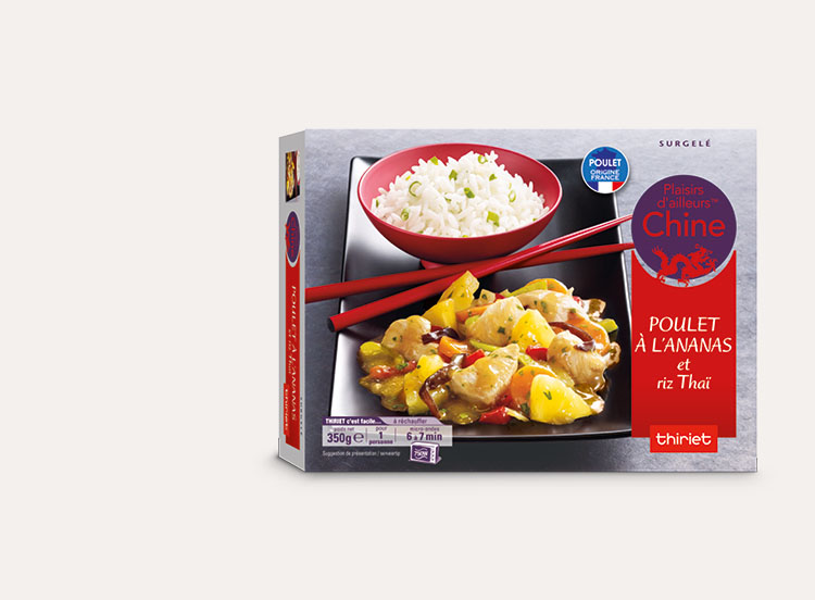 Découvrez ce savoureux mets venu d'Asie. Une alliance sucrée-salée entre des morceaux de poulet origine France 100% filets et d'ananas, le tout relevé par une sauce légèrement acidulée et accompagné de riz thaï de qualité supérieure assaisonné avec de la ciboule. De quoi vous faire voyager au pays du soleil levant !