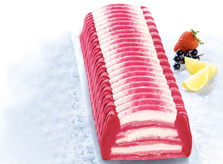 L'association délicate et fruitée des sorbets cassis, citron et fraise, à un feuilletage croustillant aromatisé au citron.