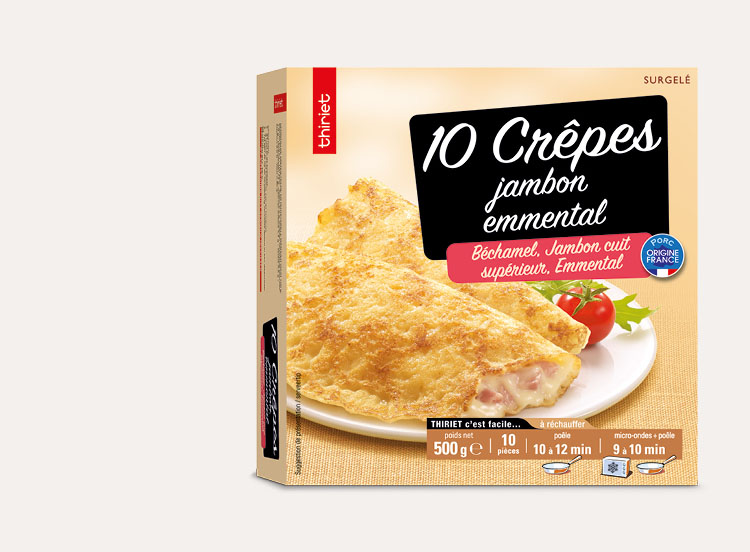 Ces crêpes aux œufs frais, pliées en forme de ½ lune, garnies de jambon cuit supérieur et d’emmental, raviront petits et grands !