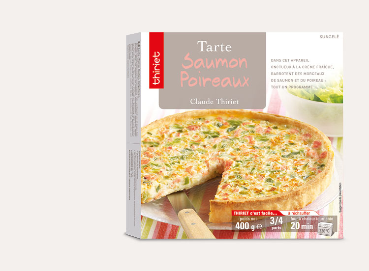 Une pâte croustillante et dorée généreusement garnie de morceaux de saumon et de poireaux, dans un appareil onctueux à la crème fraîche.