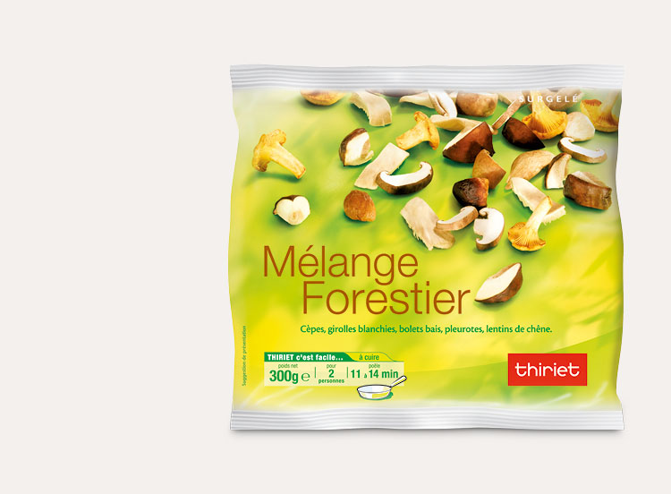 Versez les champignons encore surgelés dans une poêle chaude sans matière grasse et laissez cuire à feu vif 5 à 6 minutes en remuant régulièrement. Egouttez. Puis dans une poêle chaude avec de la matière grasse, faites revenir les champignons à feu vif 6 à 8 minutes pour le sachet entier en remuant régulièrement. Salez et poivrez.