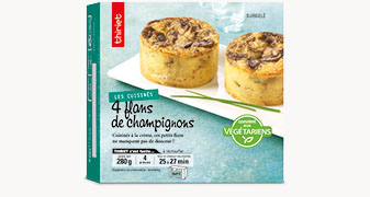 Préchauffez votre four à 150°C (Th 5).Déposez les flans de champignons encore surgelés sur une plaque recouverte d’un papier cuisson. Enfournez à mi-hauteur et laissez réchauffer 25 à 27 minutes à 150°C (Th 5) (27 à 29 minutes dans un four traditionnel). Déposez délicatement les flans à l'aide d'une spatule.