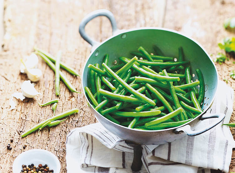 Versez la quantité souhaitée de haricots verts encore surgelés dans une casserole d’eau bouillante salée.