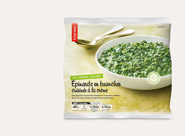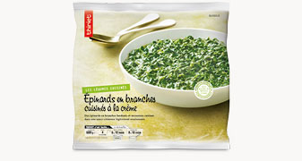 Versez la quantité souhaitée d'épinards encore surgelés dans un plat adapté. Couvrez et faites réchauffer au micro-ondes à 750W pendant les temps indiqués ci-dessous en remuant à mi-temps :