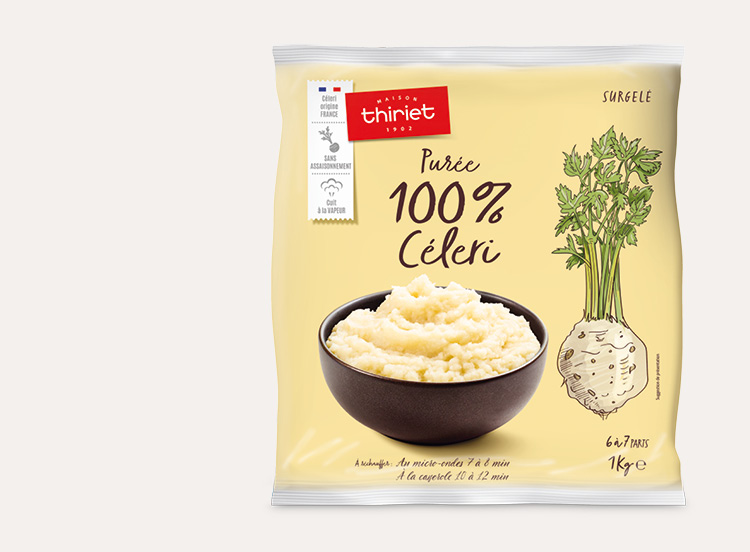 Cette purée 100% céleri origine France, présentée en mini portions individuelles, est exclusivement composée de céleri cuit à la vapeur. Naturellement très pauvre en sel, très facile à mettre en oeuvre, il suffit de la réchauffer au micro-ondes.