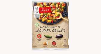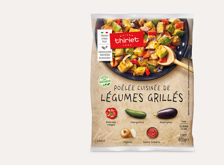 Un savoureux mélange de légumes grillés, composé de poivrons rouges, courgettes, aubergines et oignons, relevé avec une sauce à la tomate cuisinée à l'huile d’olive vierge extra, olives noires et oignons. Cette poêlée déjà assaisonnée est idéale pour réaliser une tarte provençale, mais aussi en accompagnement de gigot d'agneau. Pour une note originale, servez-la froide en hors-d'oeuvre avec du poisson froid.*La Maison Thiriet développe une gamme de légumes garantissant l'absence de résidu de pesticides à travers une agriculture plus vertueuse, plus respectueuse de l'environnement et de la biodiversité. (Seuil de quantification <0,01 mg/kg pour une recherche de 400 molécules minimum.)
