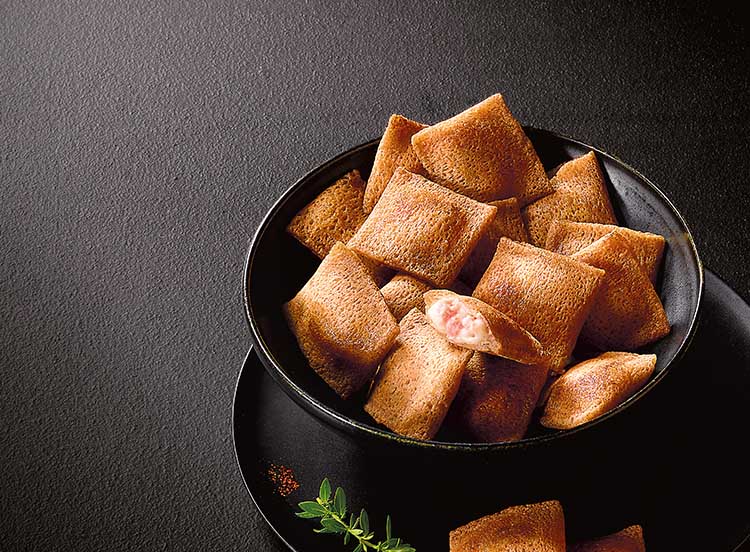 Eau, farine de blé (gluten (blé))(origine France) 14,3%, saumon cru (poisson) (origine Norvège) 12,5%, farine de sarrasin (origine France) 6,5%, crème fraîche liquide (lait) (origine France) 5%, amidons, œuf de poules élevées en plein air en poudre (oeufs) 1,2%, lactose (lait), vin blanc, lait entier en poudre (lait), sel, saumon fumé (poisson) (origine Norvège) 0,5%, vinaigre de vin blanc, caramel (sucre, eau), huile de tournesol, jus de citron concentré 0,3%, ciboulette 0,2%, persil, lait écrémé en poudre (lait), piment de Cayenne