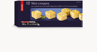 Farine de blé (gluten), eau, lait demi-écrémé (lait), Comté AOP* (lait) 16,2%, beurre (lait), lait entier en poudre (lait), truffe blanche d'été (Tuber aestivum) 1,2%, huile de tournesol, lait écrémé en poudre (lait), gluten de blé (gluten), sel, levure de boulangerie, huile d'olive vierge extra 0,4%, jus de cuisson de truffe blanche d'été (eau, sel), fleur de sel, farine de blé malté (gluten), émulsifiants : mono- et diglycérides d'acides gras - stéaroyl-2-lactylate de sodium, arôme naturel, épices (poivre blanc, poivre noir, piment du Mexique, baie rose, poivre vert), antioxydant : acide ascorbique