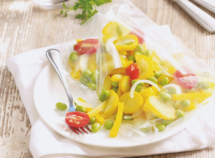 Faites le plein de bien-être avec cette association 100% légumes : carottes jaunes, courgettes jaunes, fèves de soja, tomates cerise et oignons. Non assaisonné et riche en fibre, chaque sachet vous apporte une des 5 portions de légumes recommandée par jour. A réchauffer 4 minutes 30 au micro-ondes, directement dans le sachet vapeur, pour apprécier le goût originel de chaque légume.