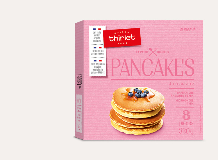 Ces petites crêpes épaisses, au lait frais entier origine Bretagne, à la farine de blé origine France et aux œufs de poules élevées en plein air origine France, se dégustent chaudes ou froides. Accompagnées de sirop d'érable, elles sont encore meilleures !