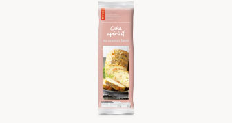 Préchauffez le four à 180°C (Th 6). Réchauffez le cake encore surgelé, hors de son emballage, pendant 15 minutes. Laissez reposer 5 minutes et découpez avec un grand couteau scie.