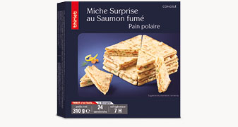 Sortez la miche surprise de son étui carton et laissez-la décongeler dans son emballage plastique, 7 heures environ au réfrigérateur. Otez délicatement le film plastique avant de servir.