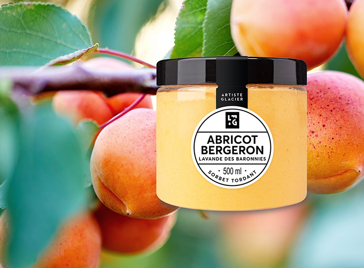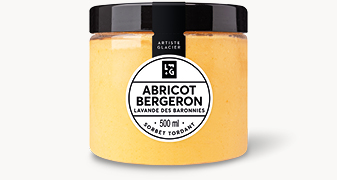 Le mariage de l’abricot Bergeron et de la lavande c’est un plongeon dans la Drôme provençale ! En plus de leur légère acidité, les abricots Bergeron récoltés dans les Côteaux du Lyonnais apportent une couleur orange naturellement rayonnante. Pour plus d’originalité, le chef ajoute une touche de lavande “super bleue” qui révèle des arômes chaleureux et accentue les qualités gustatives de l’abricot. Résultat : un sorbet tordant ! Préparez vos bagages, on s’en va écouter le chant des cigales avec ce sorbet plein fruit artisanal à 70% de fruits !