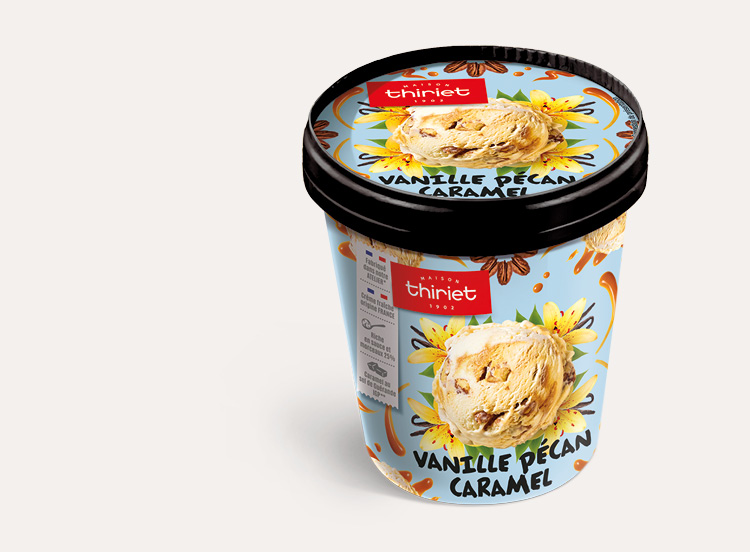 Idéale pour une pause gourmande, cette délicieuse crème glacée à la vanille à la crème fraîche origine France est agrémentée de morceaux de noix de pécan caramélisés et d'une sauce au caramel salé au sel de Guérande IGP**. Un pur moment de plaisir !*Tous les ingrédients ne sont pas d'origine France
