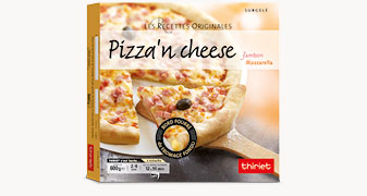 Farine de blé (gluten) 30%, eau, mozarella fondue 13,7% (mozzarella (lait), fromages (lait), eau, beurre (lait), amidons transformés, protéine de lait (lait), sels de fonte : citrates de sodium - phosphates de sodium - phosphates de calcium - diphosphates - polyphosphates, gélifiant : alginate de sodium), jambon cuit supérieur 12,2% (jambon de porc (origine Union Européenne), eau, sel, arômes, dextrose, antioxydant : ascorbate de sodium, conservateur : nitrite de sodium), mozzarella (lait) 12,2%, purée de tomate 10,4%, olive noire 1,8% (olive noire, sel), huile de tournesol, levure de boulangerie, huile d'olive vierge extra 0,4%, sel, marjolaine, persil, basilic, herbes de Provence (origan, romarin, marjolaine, thym, basilic), poivre