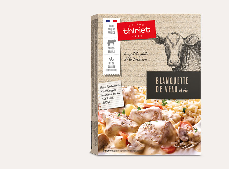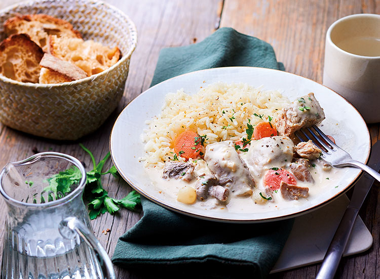 La blanquette de veau, un plat traditionnel de la gastronomie française. Nous vous proposons là une délicieuse recette de ce plat tant apprécié. Des morceaux de viande de veau sélectionnés (épaule de veau origine France) mijotés pendant plus de 4 heures. Cette cuisson longue durée donne à la viande une tendreté et un goût incomparable. La viande est nappée d'une sauce à la crème (origine France) garnie de quelques carottes fondantes et accompagnée de riz de qualité supérieure. Régalez-vous !