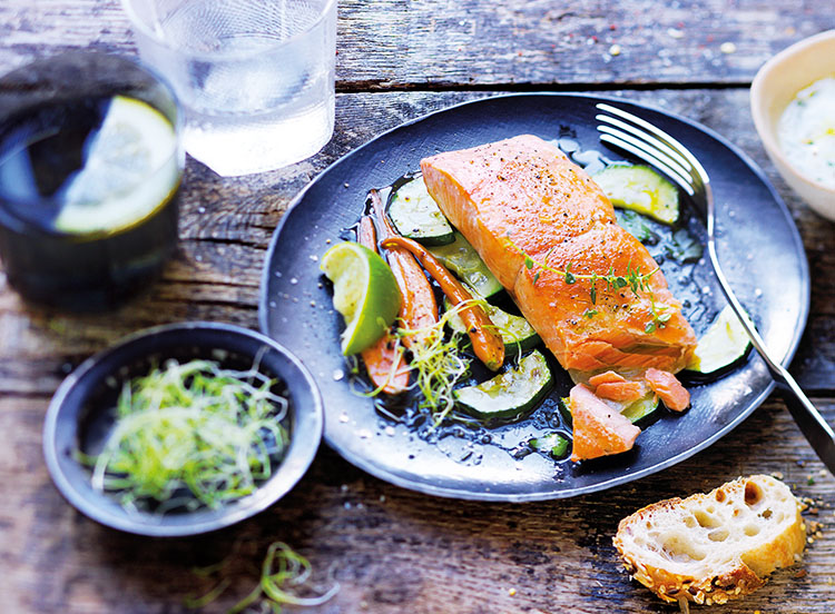 Vous pouvez accompagner votre saumon d'une poêlée de légumes aux agrumes et d'une sauce beurre citron.