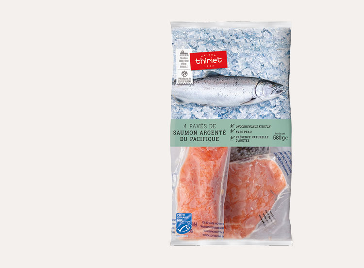 Composez comme bon vous semble vos recettes de la mer avec ces morceaux choisis de saumon argenté du Pacifique, saumon sauvage aussi appelé Coho, pêché dans les eaux pures de l’Alaska par des pêcheries responsables. Présentés en 4 pavés avec présence naturelle d'arêtes, emballés individuellement, facilement reconnaissables par leur peau argentée, leur chair ferme et tendre se tiendra parfaitement à la cuisson. Ce produit provient d’une pêcherie qui a répondu à un référentiel environnemental pour une pêche durable et bien gérée.