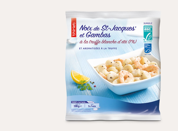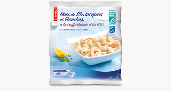 Osez la truffe ! Avec ce mélange de noix de Saint-Jacques issues d'un pêcherie certifiée répondant à un référentiel environnemental et de gambas issues d'une ferme aquacole responsable. La truffe blanche d'été a trouvé ici un accompagnent de choix, à moins que ce ne soit le contraire ! Enrobés d'une sauce crémée délicieusement parfumée, ces fruits de mer prêts à poêler se prêtent à toutes vos préparations : pâtes, cassolettes...