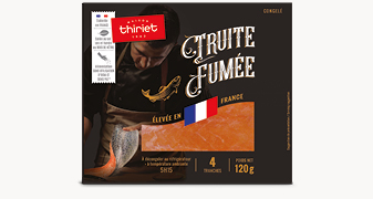 *PAT : Protéines d'Animaux Terrestres. Thiriet a fait le choix de ne pas utiliser de farine d'animaux terrestres dans l'alimentation de ces truites. Ces truites sont également nourries sans OGM (Organismes Génétiquement Modifiés) <0,9%