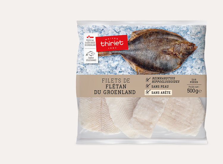 Ces filets de Flétan du Groënland sauvage, pêché en Atlantique Nord-Ouest au large de la côte ouest du Groënland, sans peau et sans arête, ne demandent qu'à être cuisinés. Juste poêlés, cuits au four ou au micro-ondes, leur chair blanche se déguste en toute occasion.La Maison Thiriet a fait le choix pour ce Flétan du Groenland de s’approvisionner principalement dans la baie de Disko, connue pour le fjord glacé d’Ilulissat classé au patrimoine mondial de l’Unesco depuis 2004