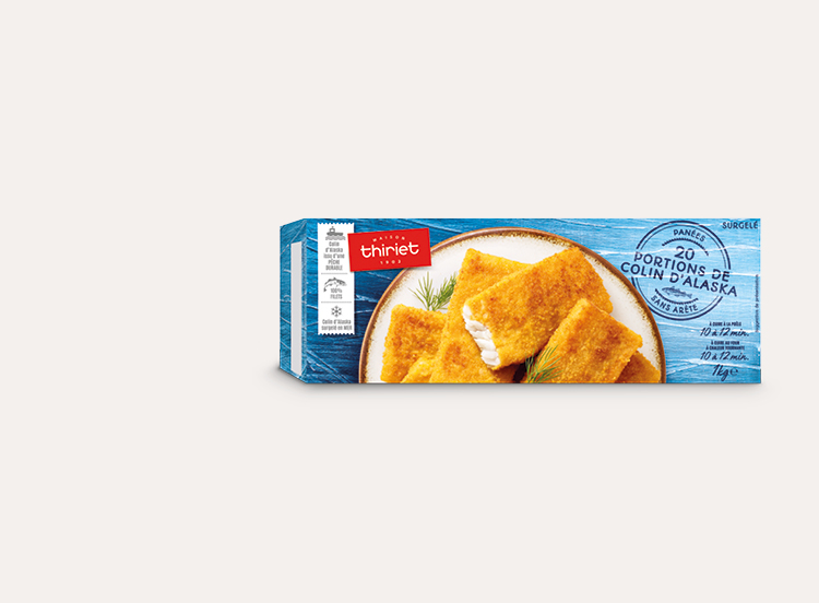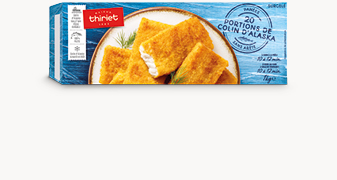 Des portions de colin d'Alaska sans arêtes*, enrobées de chapelure et déjà préfrits pour un cœur de repas croustillant. La forme rectangulaire de ces panés est particulièrement appréciée des enfants.