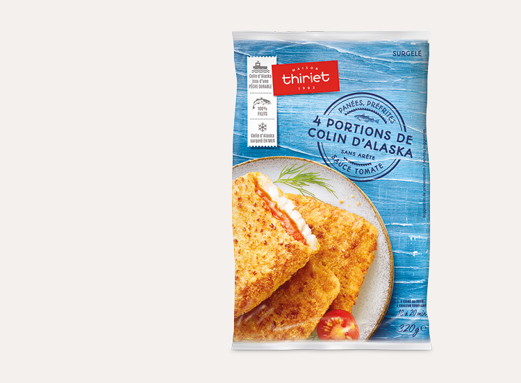 Vous serez comblés par ces panés : le colin d'Alaska 100% filets sans arêtes* et provient d’une pêcherie qui a répondu à un référentiel environnemental pour une pêche durable et bien gérée. Généreusement garnis d’une sauce tomate du meilleur goût et enrobés d’une panure croustillante et préfrits à l'huile de colza, ces carrés feront barboter de plaisir les papilles des petits et des grands !