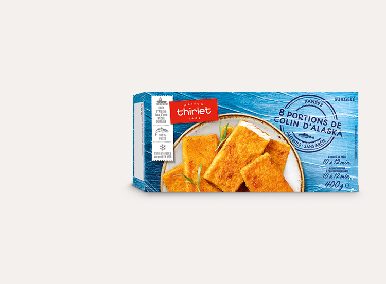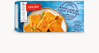 Des portions de filets de colin d'Alaska sans arêtes*, enrobées de chapelure et déjà préfrits pour un cœur de repas croustillant. La forme rectangulaire de ces panés est particulièrement appréciée des enfants.