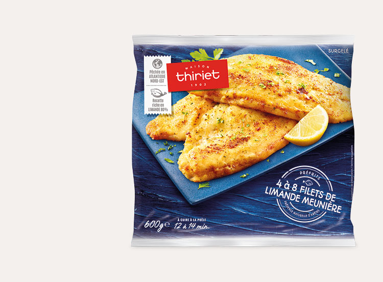 Déjà citronnés et persillés, ces filets de limande pêchés en Atlantique Nord Est- sont enrobés d'une fine panure (meunière). Cette recette riche en limande (80%) est préfrite pour une praticité de cuisson.