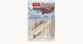 Queues de lotte du Cap, provenant de lottes sauvages, pêchées en Atlantique Sud-Est, d'origine Namibie/Afrique du Sud.
