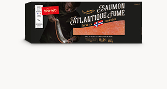 Saumon élevé en Norvège, salé au sel sec et fumé au bois de hêtre en France, pour une finesse de dégustation. Le saumon dans ce produit provient d'une ferme aquacole qui a répondu à un référentiel pour une aquaculture responsable.*PAT : Protéines d'Animaux Terrestres, Thiriet a fait le choix de ne pas utiliser de farines d'animaux terrestres dans l'alimentation de ces saumons. Ces saumons sont également nourris sans OGM (Organismes Génétiquement Modifiés) <0,9%