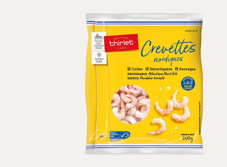 Norvège - Pêchées en Atlantique Nord-Est. Toutes les saveurs de crevettes sauvages de taille moyenne, cuites et décortiquées pour une facilité de préparation. Ce produit provient d’une pêcherie qui a répondu à un référentiel environnemental pour une pêche durable et bien gérée.