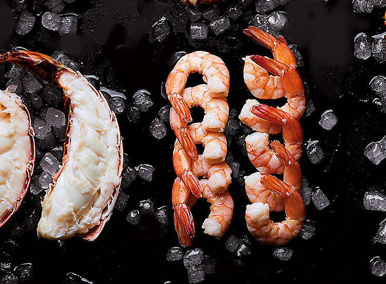 Queue de crevette (crustacés, Penaeus vannamei, élevées en Equateur) 99,5%, sel, antioxydant : disulfite de sodium (sulfites)