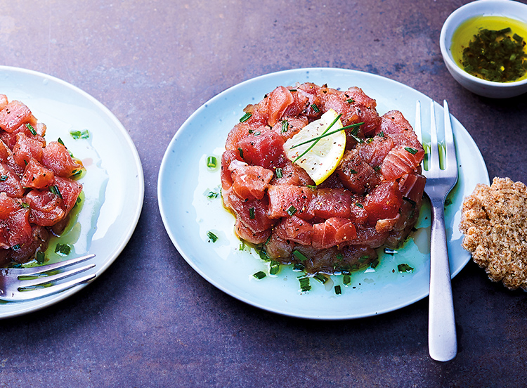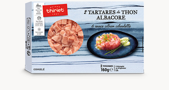 Sortez les tartares et la dosette de l’étui carton et placez-les au réfrigérateur pendant 5 heures. Ôtez l’opercule des tartares et démoulez-les dans un récipient adapté. Ajoutez la sauce à votre convenance puis mélangez. Dressez sur une assiette de présentation et servez bien frais.