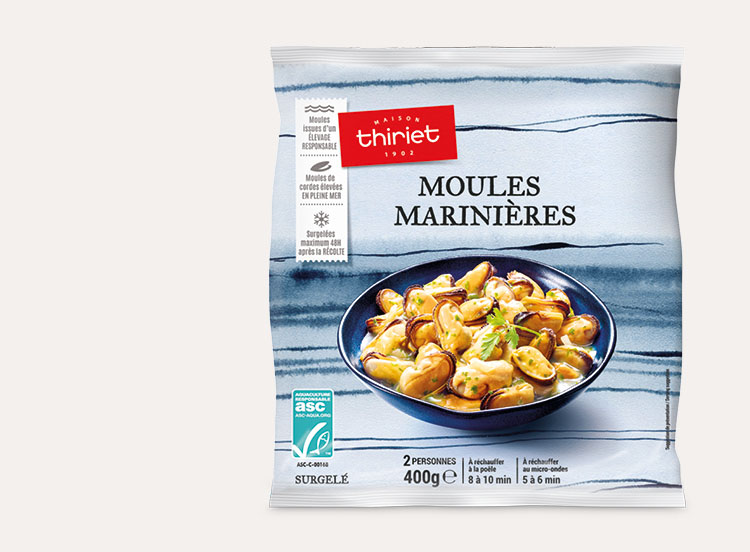 Une recette de moules marinières composée de moules cuites et décoquillées, agrémentées d'une sauce légère à base de vin blanc et oignons, le tout légèrement persillé. Simplement à réchauffer quelques minutes au micro-ondes ou à la poêle et à accompagner de frites, pour un repas savoureux. Ces moules proviennent d’une ferme aquacole qui a répondu à un référentiel pour une aquaculture responsable.