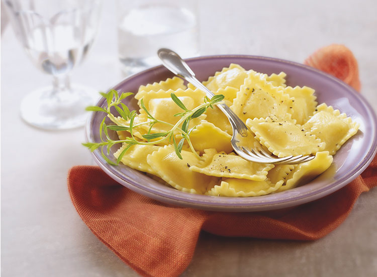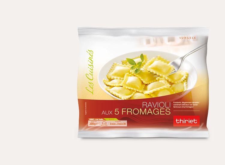 Ces raviolis « carrément » dentelés n’ont que des bons côtés ! Généreusement garnis de 5 variétés de fromages : fromage à pâte dure, mozzarella, gouda, fromage à pâte mi-dure, gorgonzola AOP*, ils sont à la fois al dente et fondants à souhait ! Parfaits pour régaler 1 à 2 personnes … en toute simplicité !