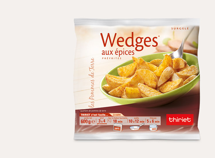 Disposez les wedges encore surgelées dans un plat allant au four. Enfournez à mi-hauteur et faites cuire 18 minutes (20 minutes dans un four traditionnel) en retournant à mi-cuisson.