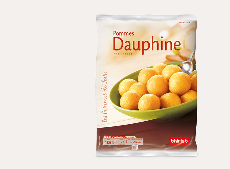 Plongez les pommes Dauphine encore surgelées dans l’huile chaude (175°C), par PETITES QUANTITES (100g / litre d’huile) pendant 4 à 5 minutes, jusqu’à ce qu’elles soient croustillantes et dorées. Egouttez-les avant de servir.