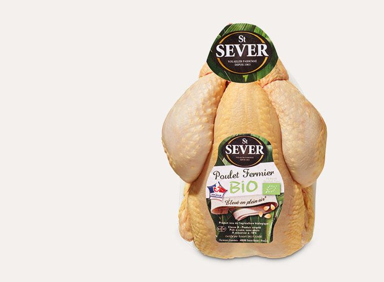 Ce poulet jaune fermier entier, estampillé BIO, est élevé en plein air*, alimenté avec 100% de végétaux, minéraux et vitamines dont 95% de matières premières issues de l'agriculture biologique. Sa chair n'en est que plus raffinée !
