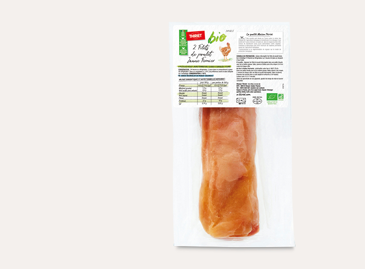 Découpés dans des volailles fermières élevées en plein air, origine France, et issues de l'agriculture biologique, ces filets de poulet jaune sont à déguster tout simplement à la poêle ou même au four afin de vous dévoiler leurs plus subtiles saveurs.**Nos poulets sont élevées en France selon le cahier des charges de l'agriculture biologique et bénéficient d'un élevage d'une durée de 81 jours minimum, en plein air, dans le respect du bien-être animal. Ils bénéficient aussi d'une alimentation 100% végétale, minérale et vitaminique avec 95% minimum de matières premières issues de l'agriculture biologique.