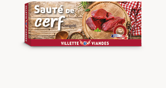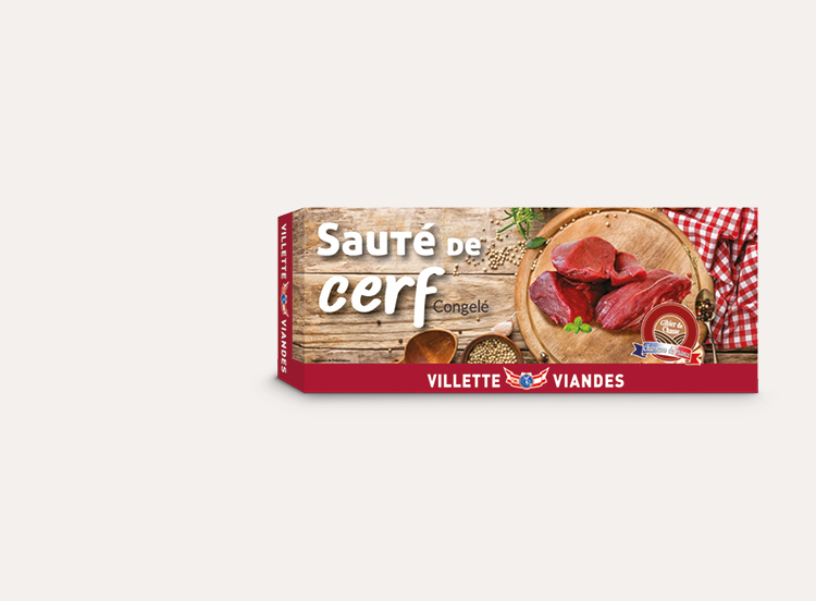 Du sauté de cerf sauvage, issu de chasse française, coupé à la main dans l'épaule et emballé sous vide.