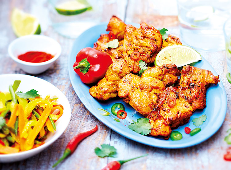Pour l’apéritif, accompagnez les bouchées de poulet marinés de tzatziki (yaourt grec et concombre).