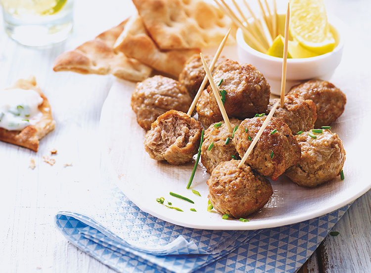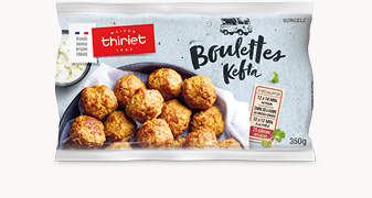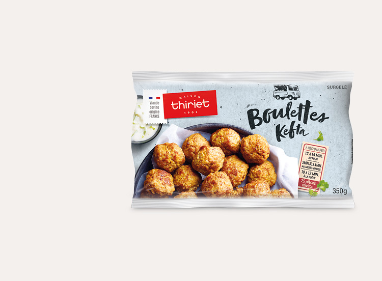 Des boulettes de viande bovine française et de viande d'agneau assaisonnées, cuites, à réchauffer.