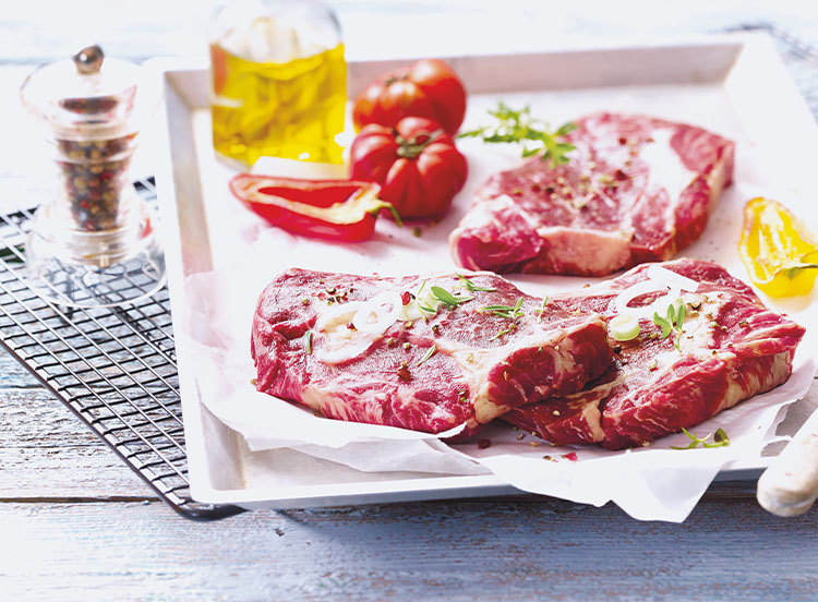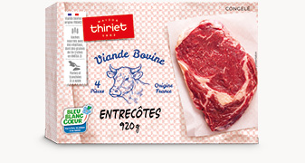 Animaux nourris avec une alimentation avec des végétaux dont des graines de lin naturellement riches en Oméga 3, produit contrôlé Bleu-Blanc-Coeur. Des entrecôtes tranchée main. A la poêle ou à griller au barbecue !