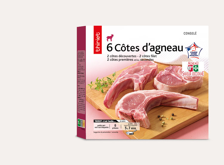 Ces côtes d'agneau origine France, légèrement persillées, révèleront toute leur tendreté à la poêle ou au grill, relevées de quelques aromates. Le produit est composé de 6 côtes d'agneau : 2 côtes découvertes, 2 côtes premières et/ou secondes, 2 côtes filet.