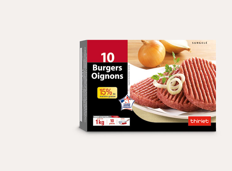 Déposez le burger oignon encore surgelé dans une poêle chaude avec de la matière grasse. Saisissez-le de chaque côté à feu vif, puis laissez-le cuire quelques minutes à feu moyen en retournant régulièrement. Appréciez la cuisson. Salez et poivrez.